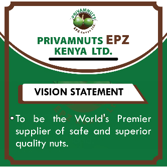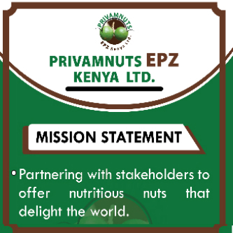 Privamnuts EPZ Kenya limited is an agro food processing company in Kenya with the principle offices in Muthatari, Embu. We work towards leveraging the collective genius as well as individual strengths and talents to offer solutions that are beneficial to all stakeholders as well as be leading producers in products that are of superior quality and nutritious. We espouse the values of customer focus, integrity and respect, dependability, teamwork and collaboration, a passion for excellence, responsivity and accountability, as well as innovativeness.